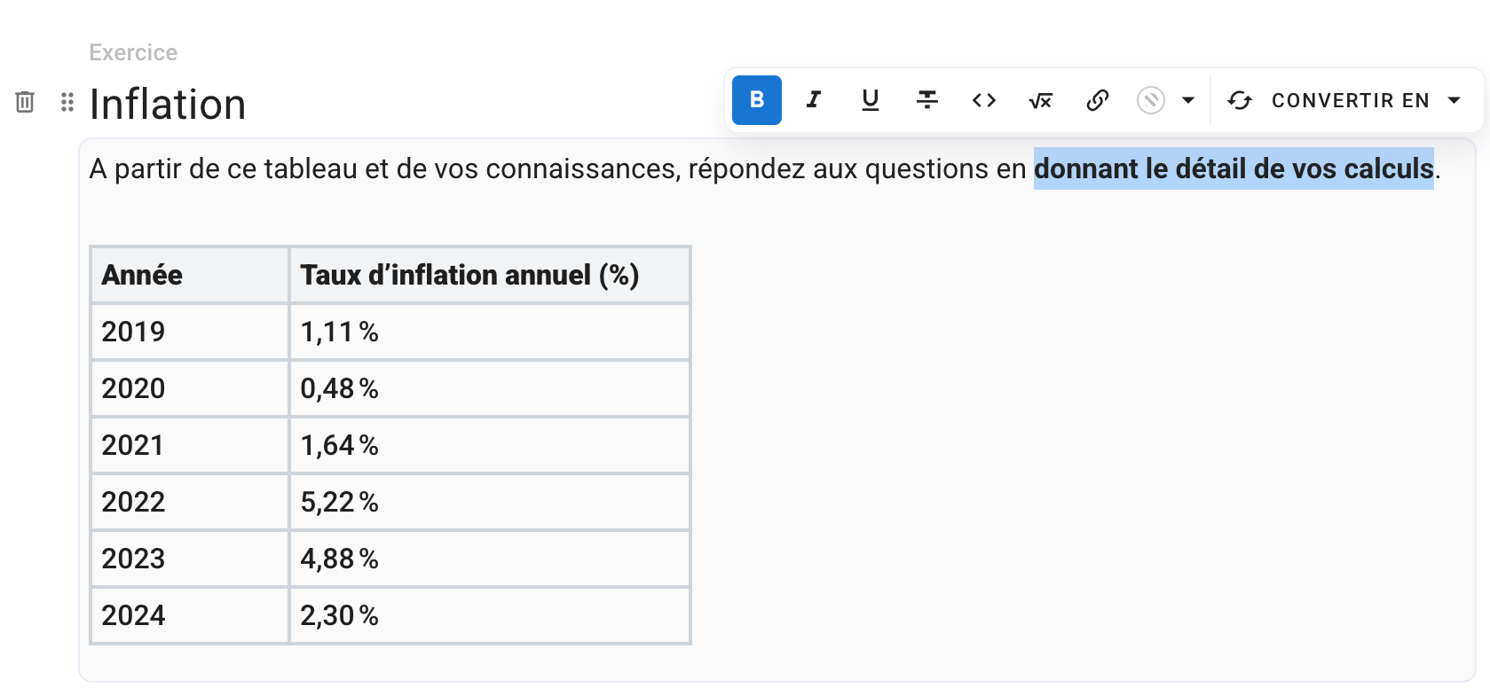 Conversion d’une question en exercice et vice versa