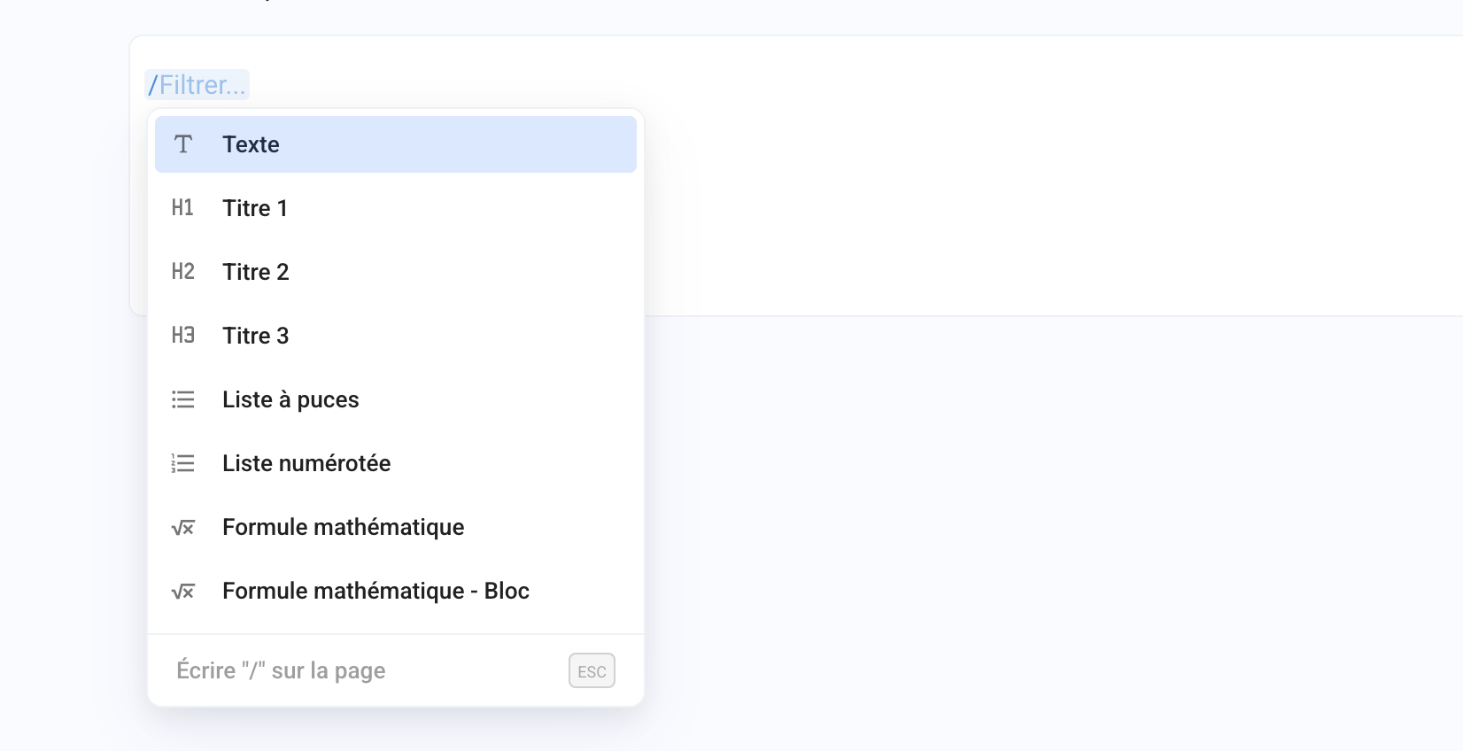 Vous pouvez taper / pour afficher une liste d'éléments à ajouter dans votre sujet, en particulier des images, formules mathématiques, tableaux ou blocs de code.