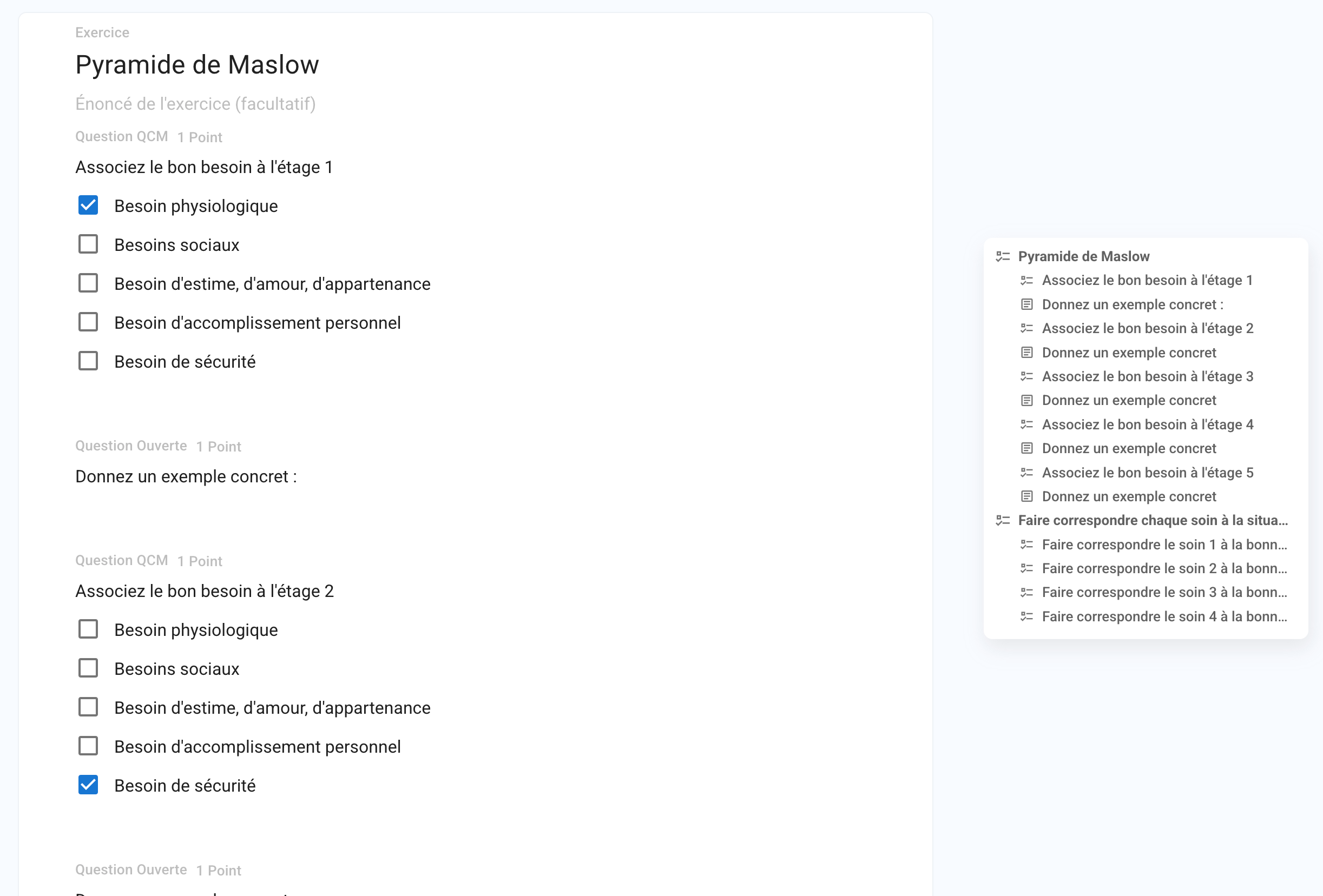 Possibilité de dupliquer un élément (section, exercice, question, choix)