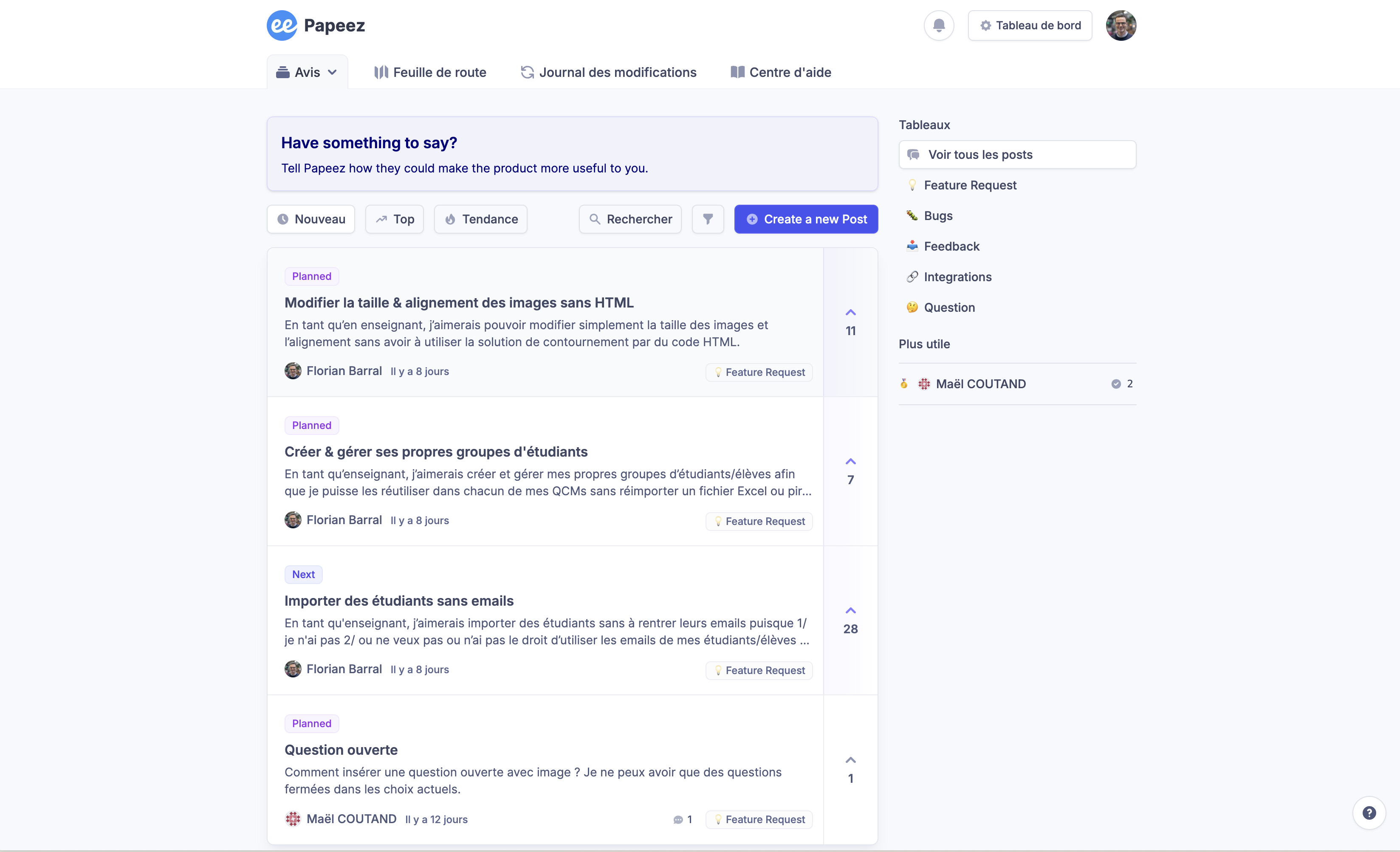 Nous avons repensé de zéro notre centre d’aide et la façon de récolter vos suggestions afin simplifier leur suivi et de les partager avec la communauté. 🎉